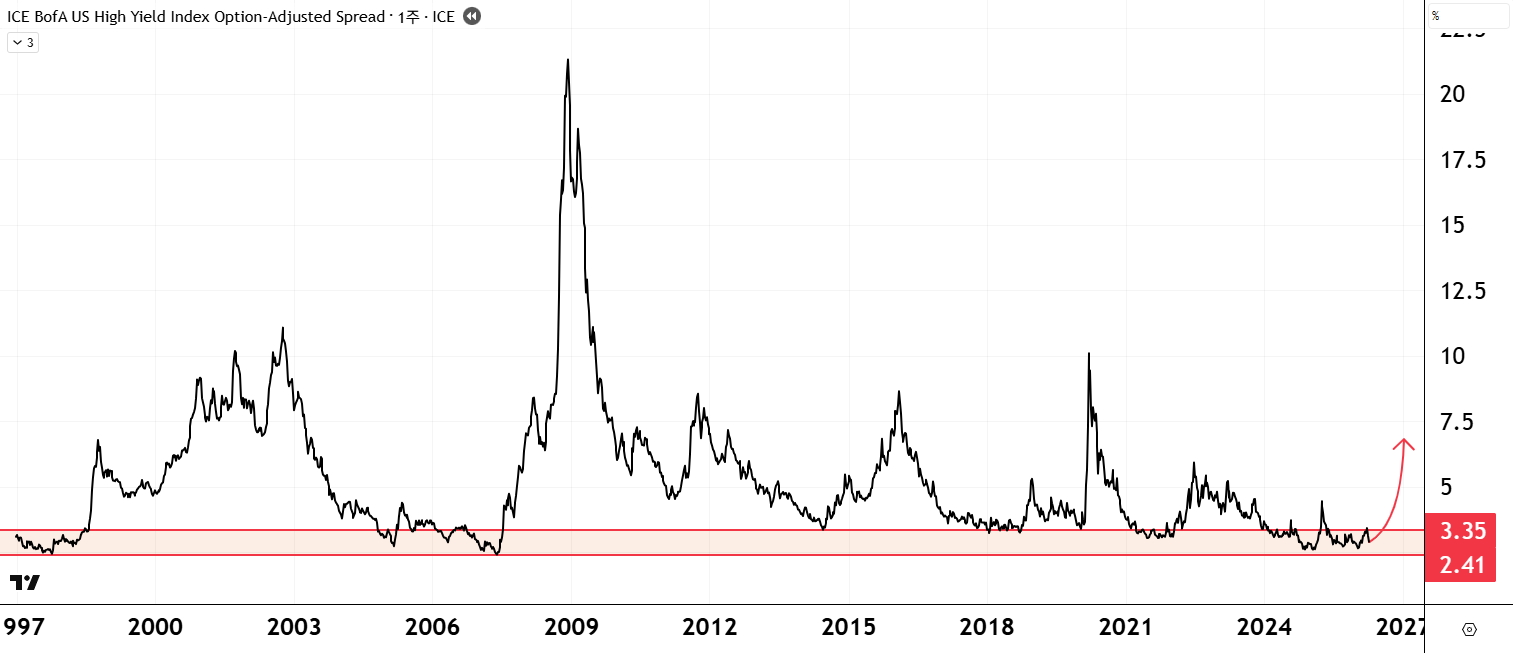 하이먼 민스키는 "경제는 성공을 통해 스스로를 파괴한다"라고 경고했다. 역대급으로 낮은 스프레드는 시장이 안전하다는 증거가 아니라, 리스크를 감지하는 지표가 마비될 정도로 광기에 젖어 있다는 증거다.